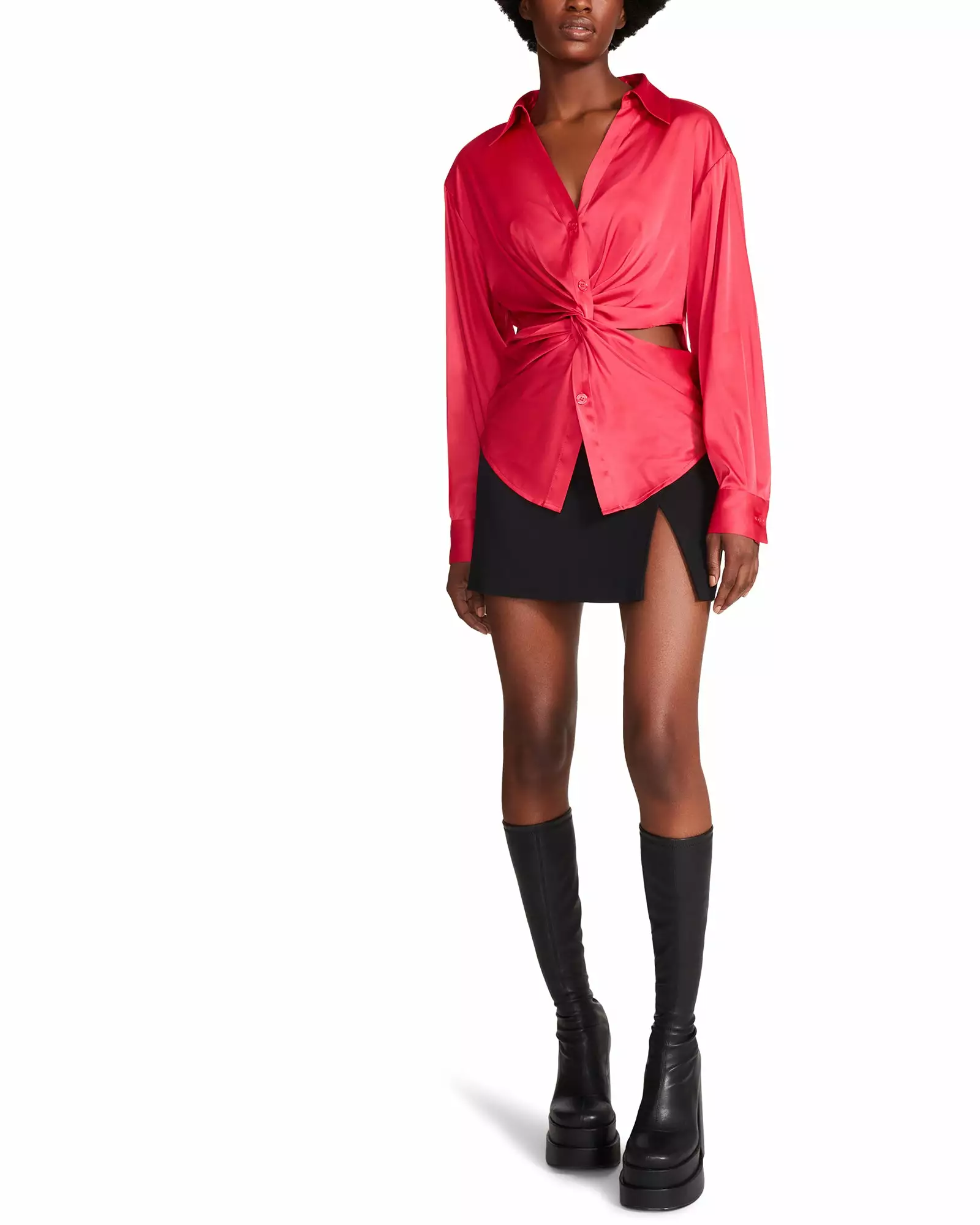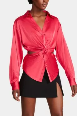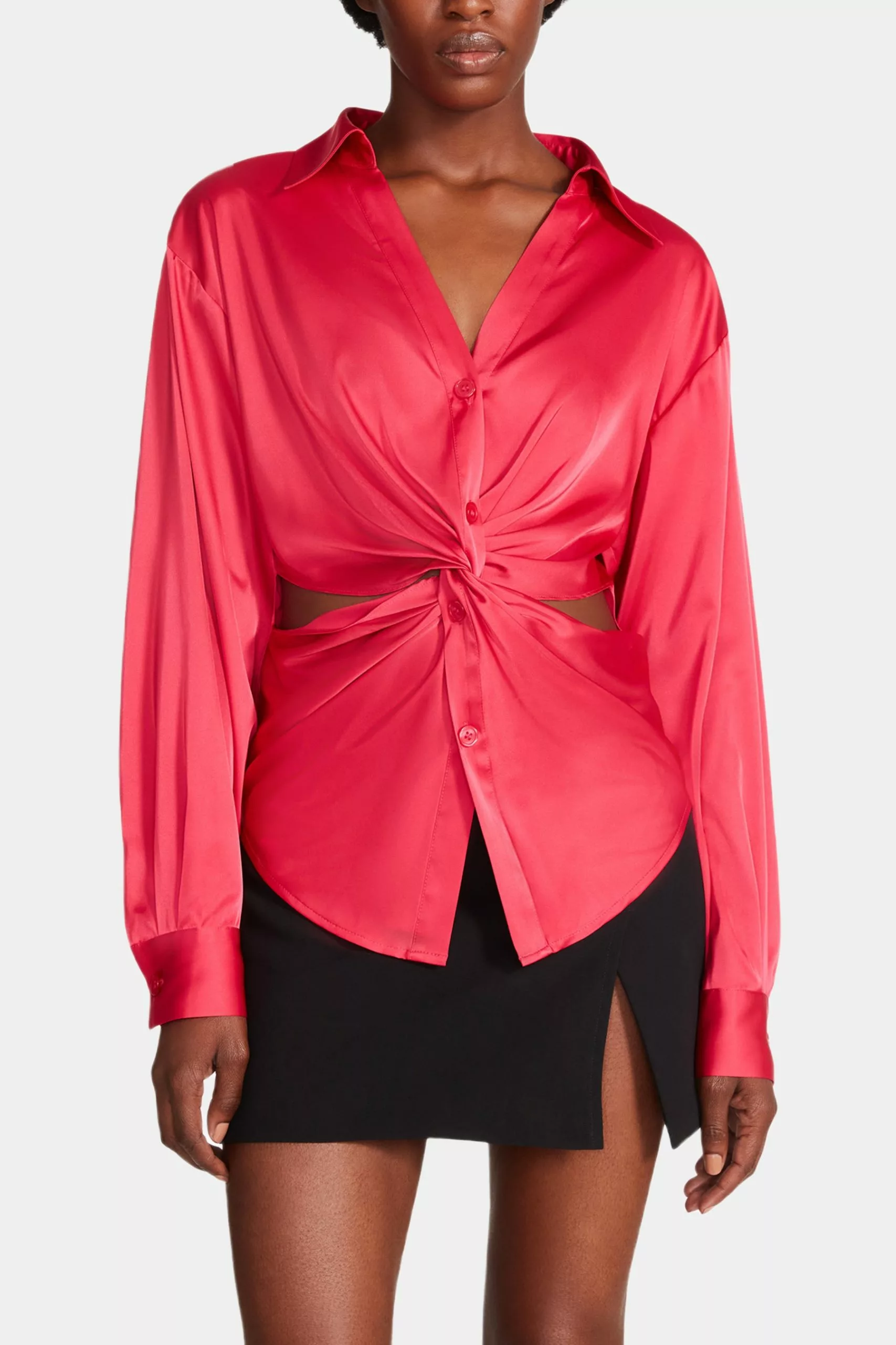 This Elle Top is a chic blouse that’s super sexy for a night out or a party. The cut-out detail at the waist and satin fabric would make you stand out from the crowd.