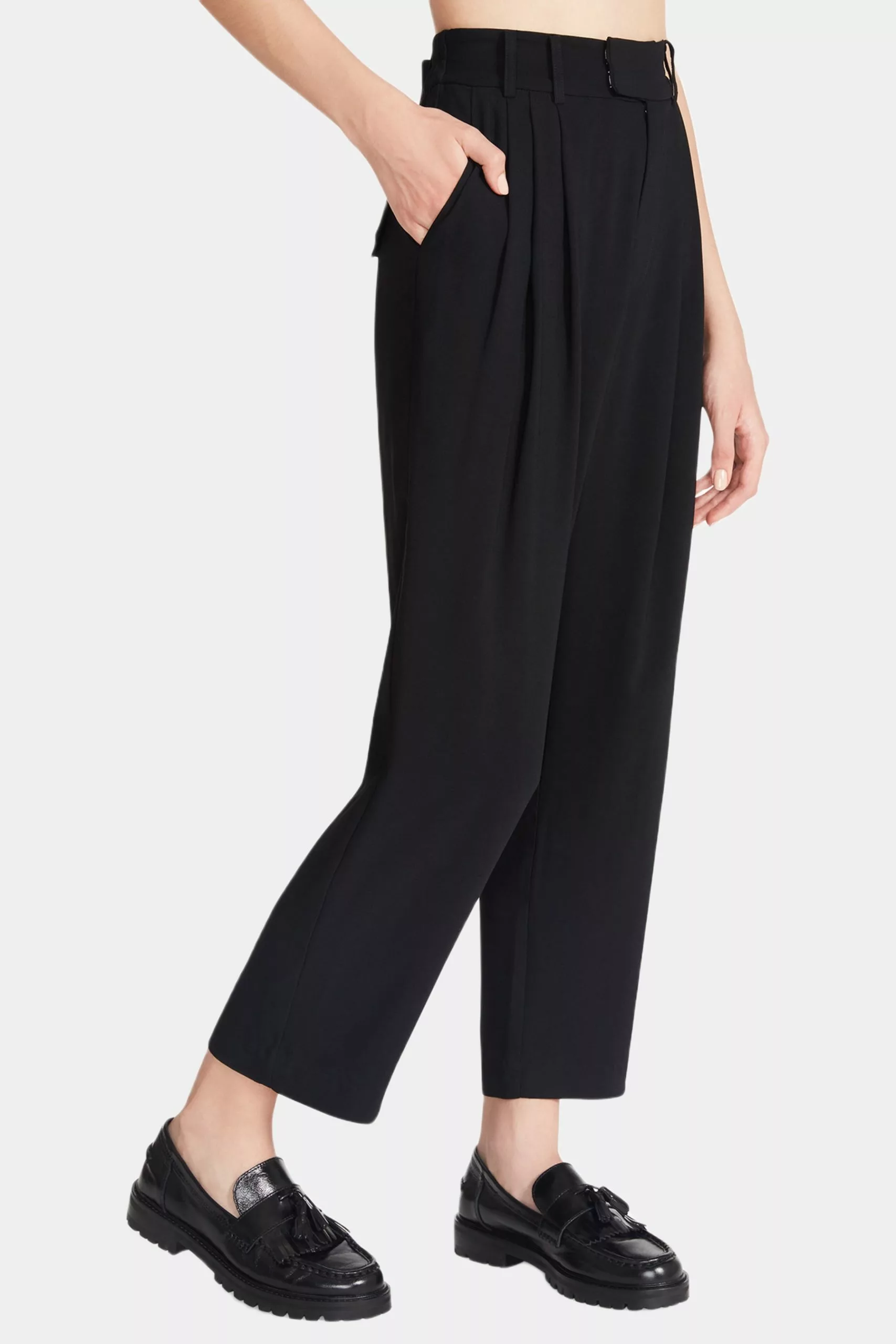 - High pleated waistline