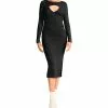 - Straight hemline falls at an elegant length.