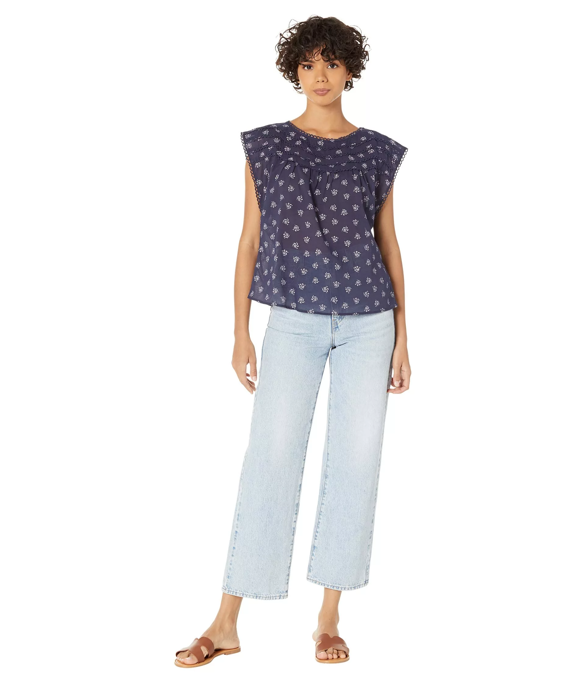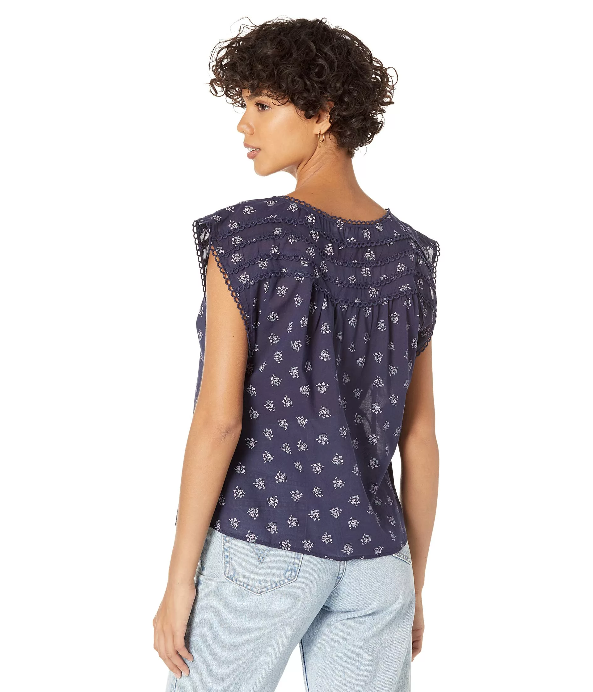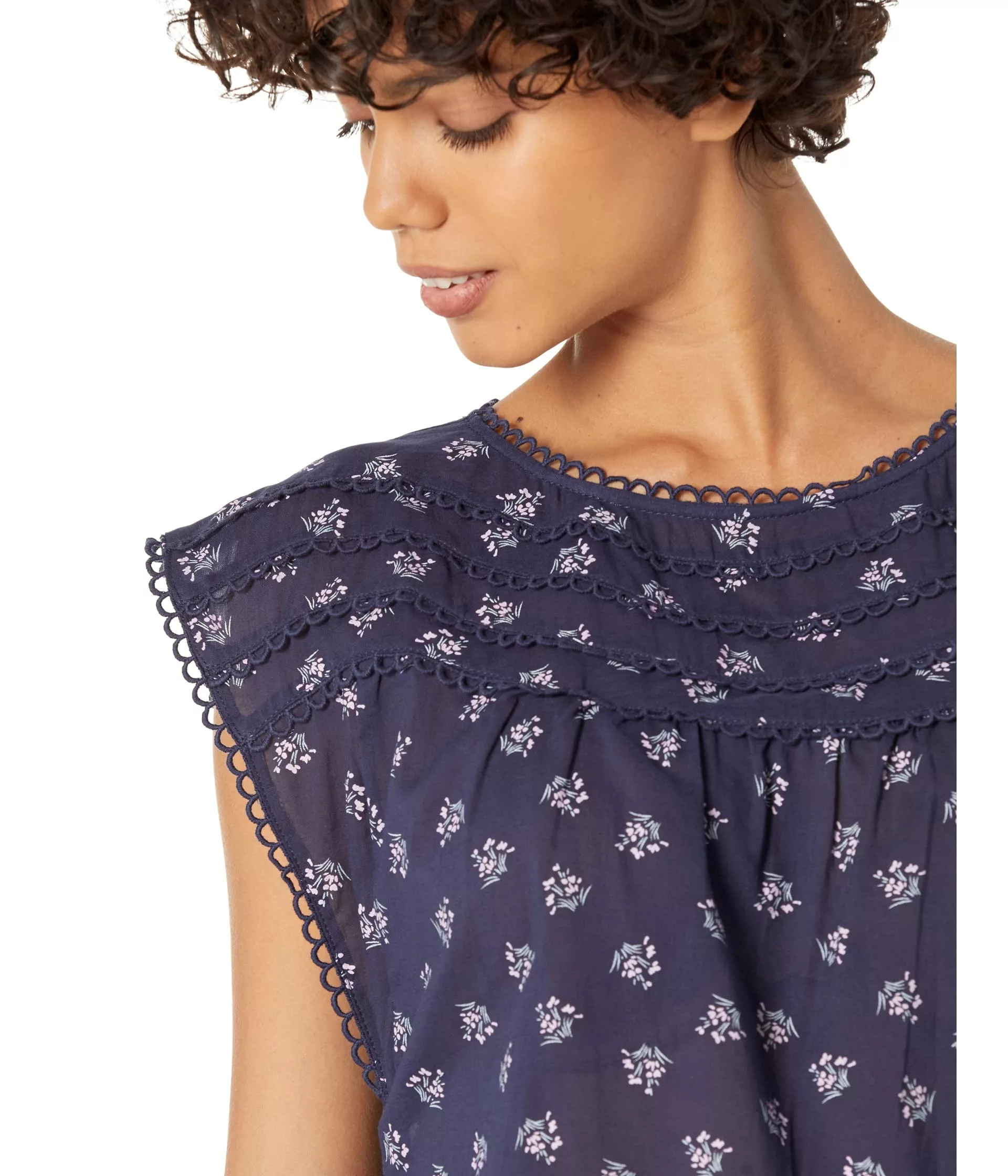 - Cotton voile blouse with allover contrasting floral print.