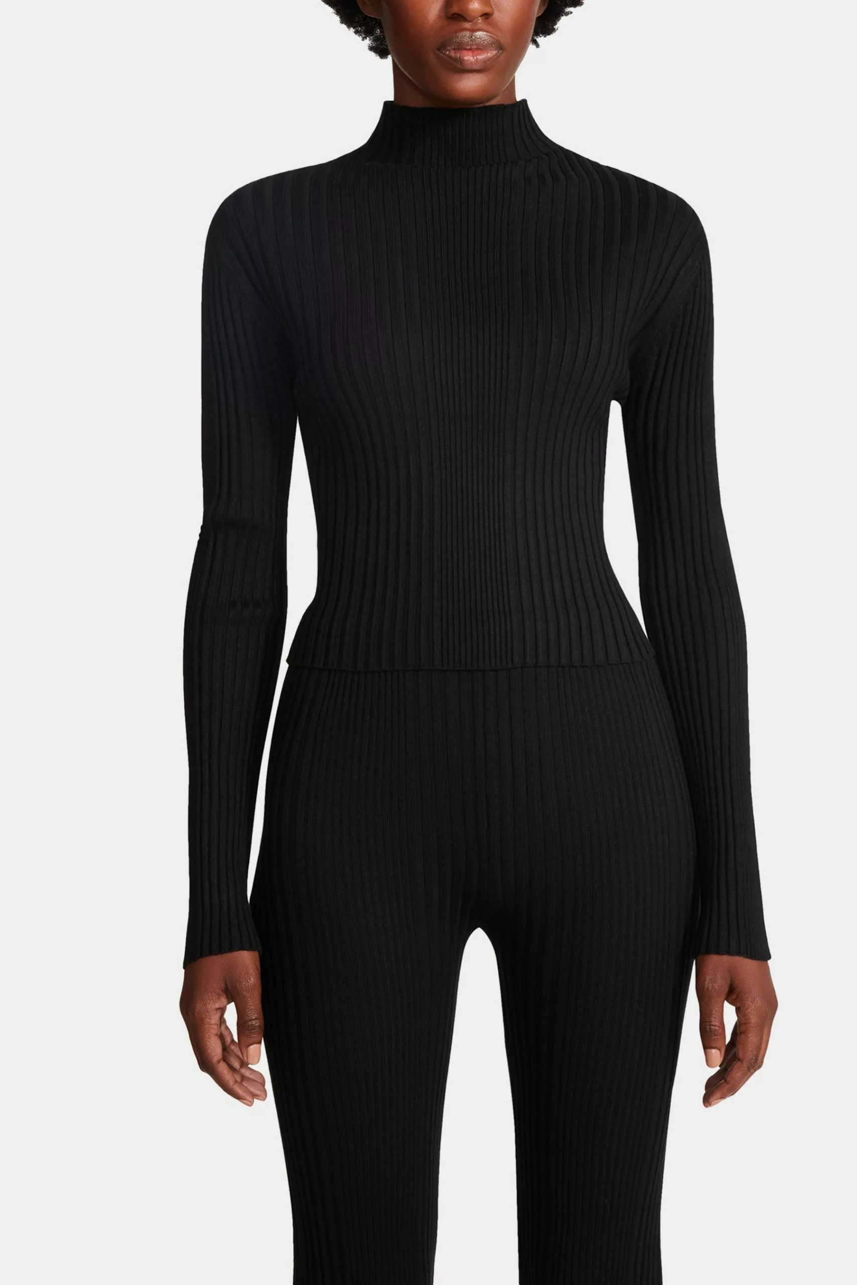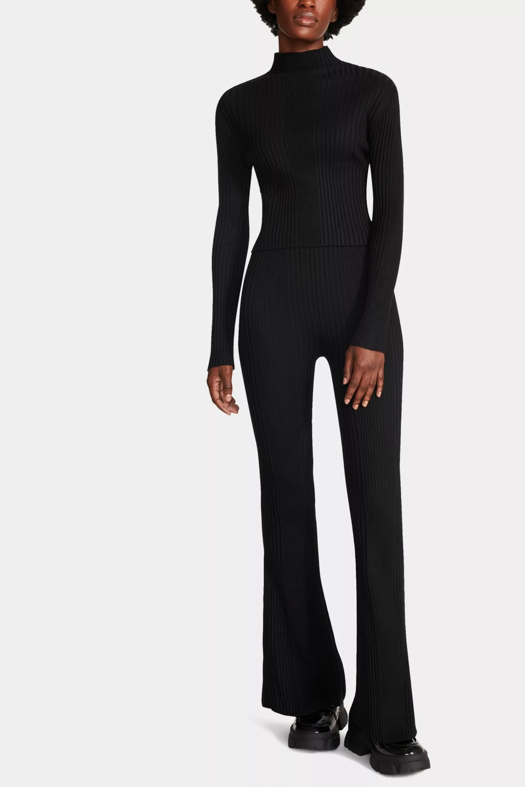 Icons only. The Julien set is a classic rib fitted turtleneck with the matching flare leg pant.