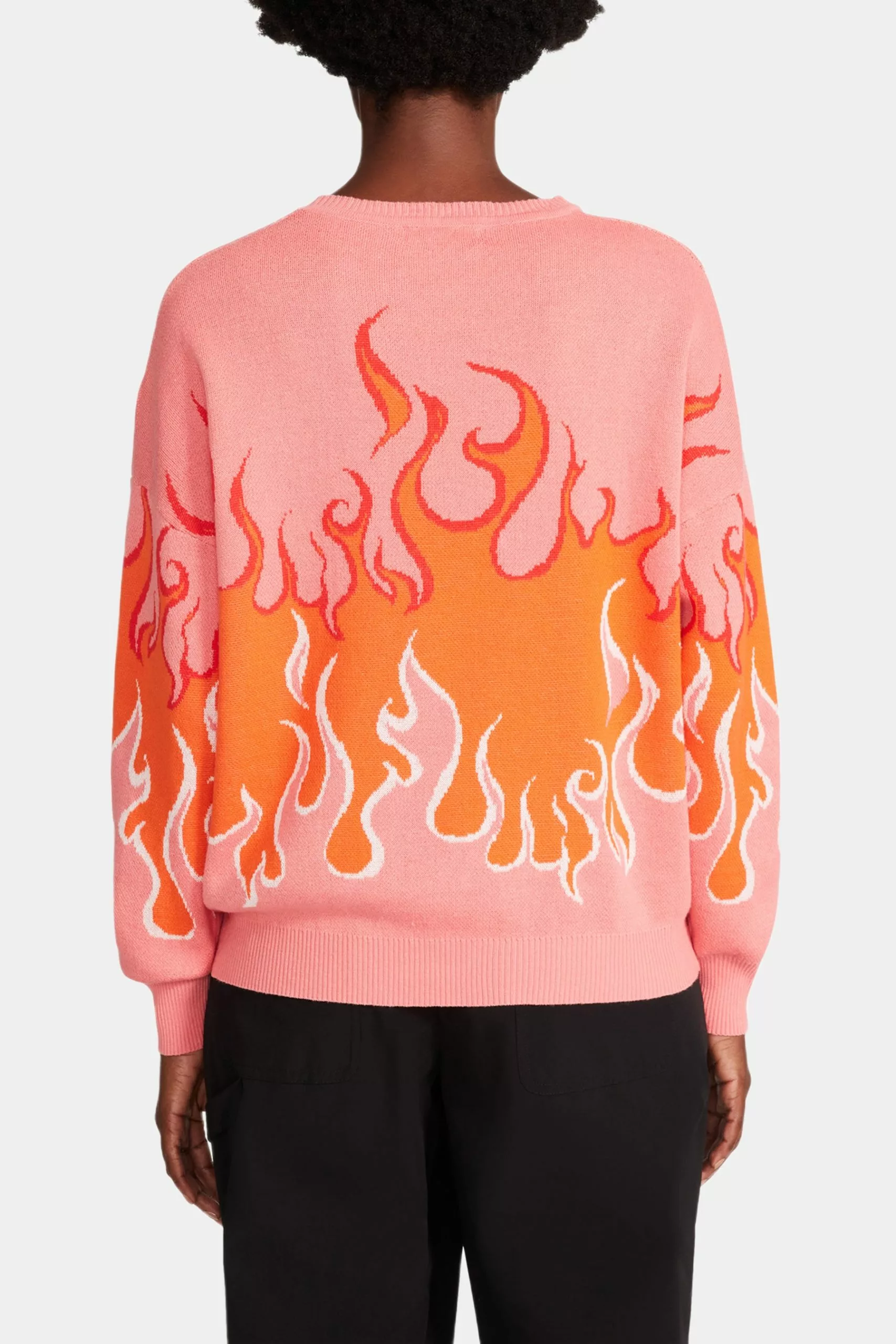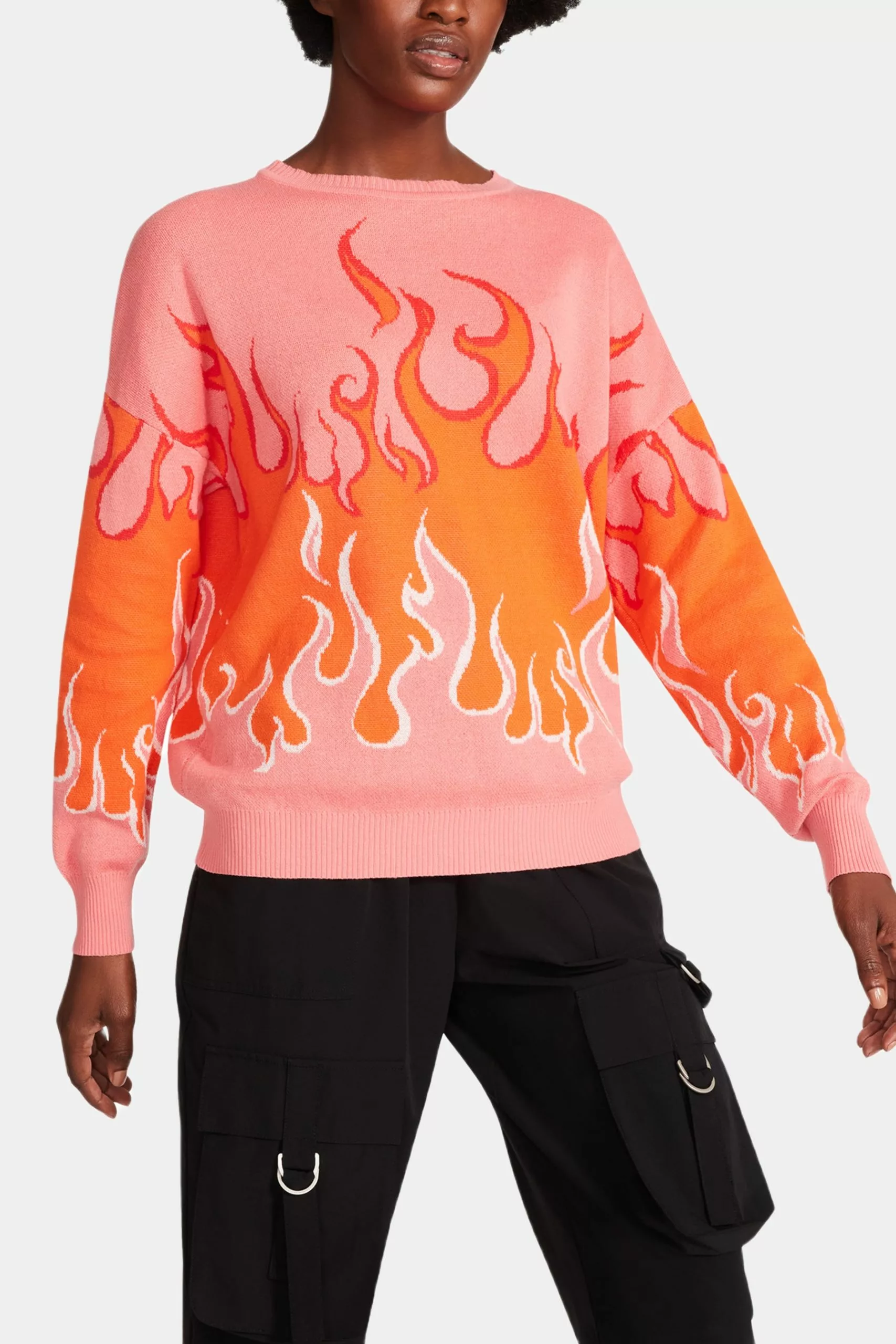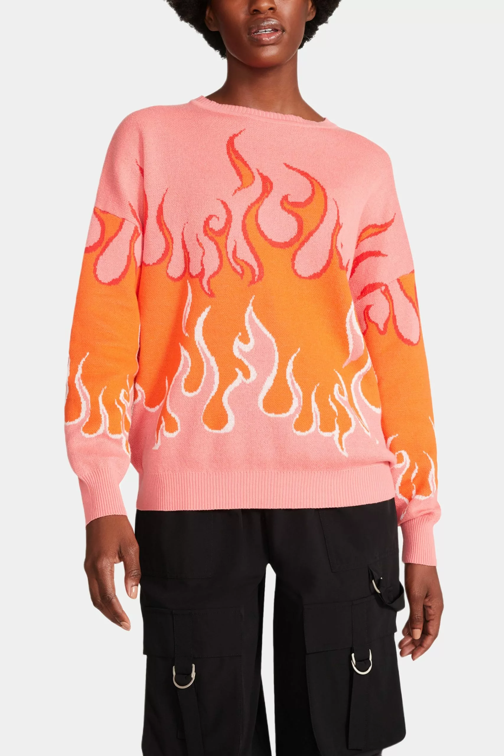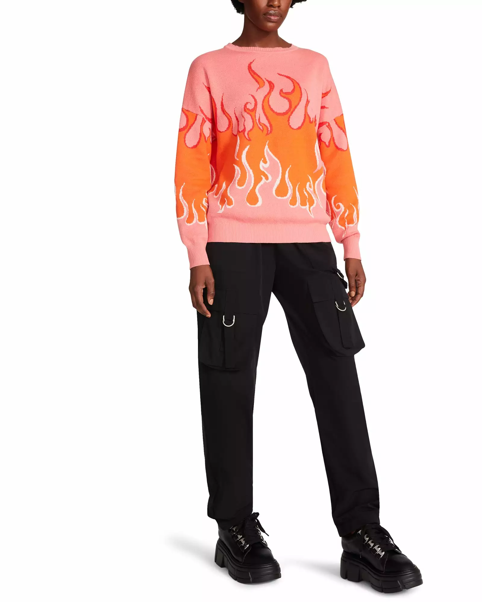 The Livia Sweater is perfect for adding a touch of warmth to your wardrobe. This cozy pullover features a fiery flame jacquard design, long sleeves, and a crew neckline. It pairs well with jeans or denim skirts, creating a stunning ensemble.