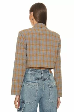 Steve Madden Rupi Cropped Blazer Grey Plaid