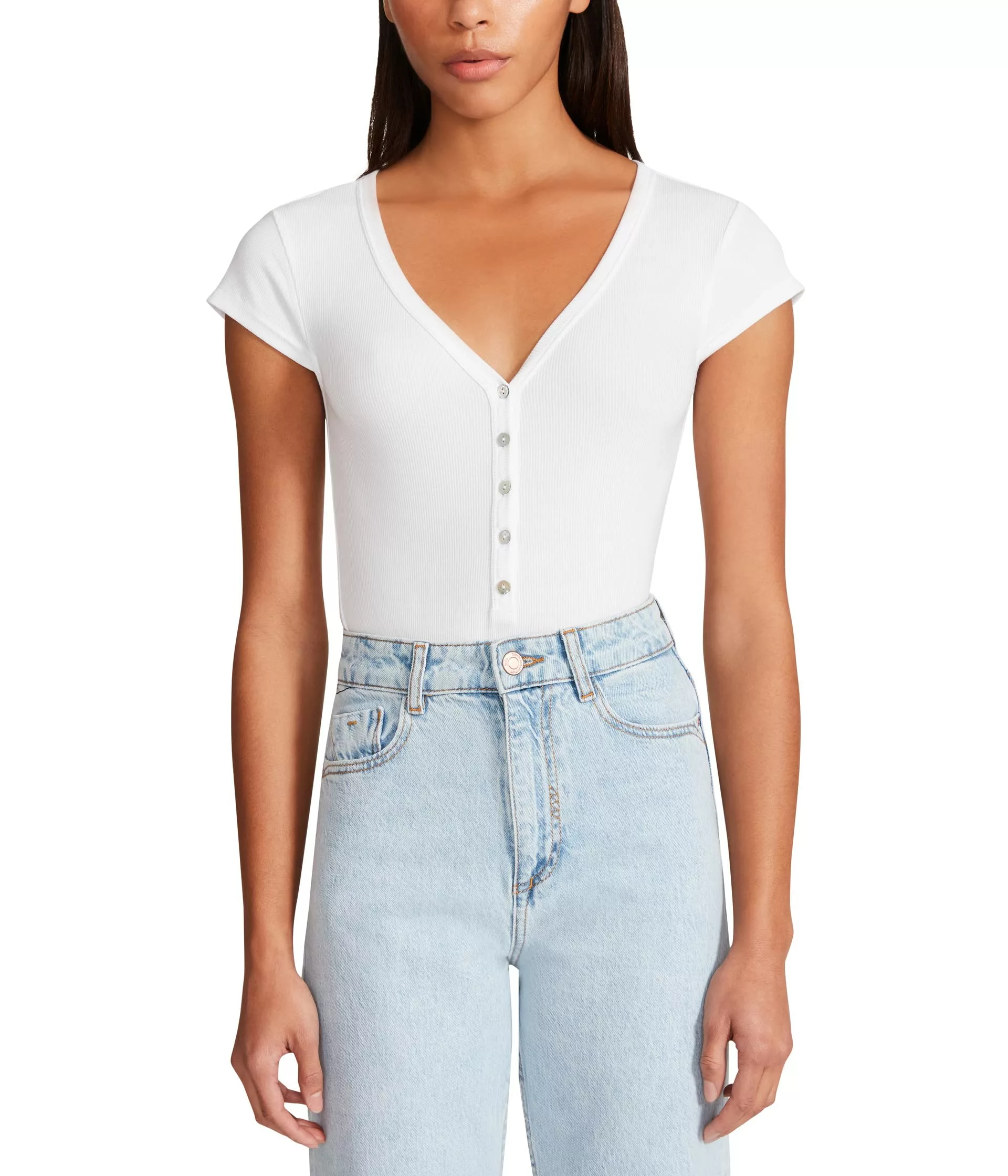 - Slim fit ribbed bodysuit.