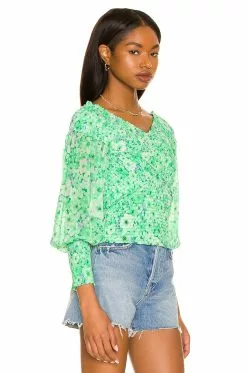 - Blouson sleeves with elastic cuffs