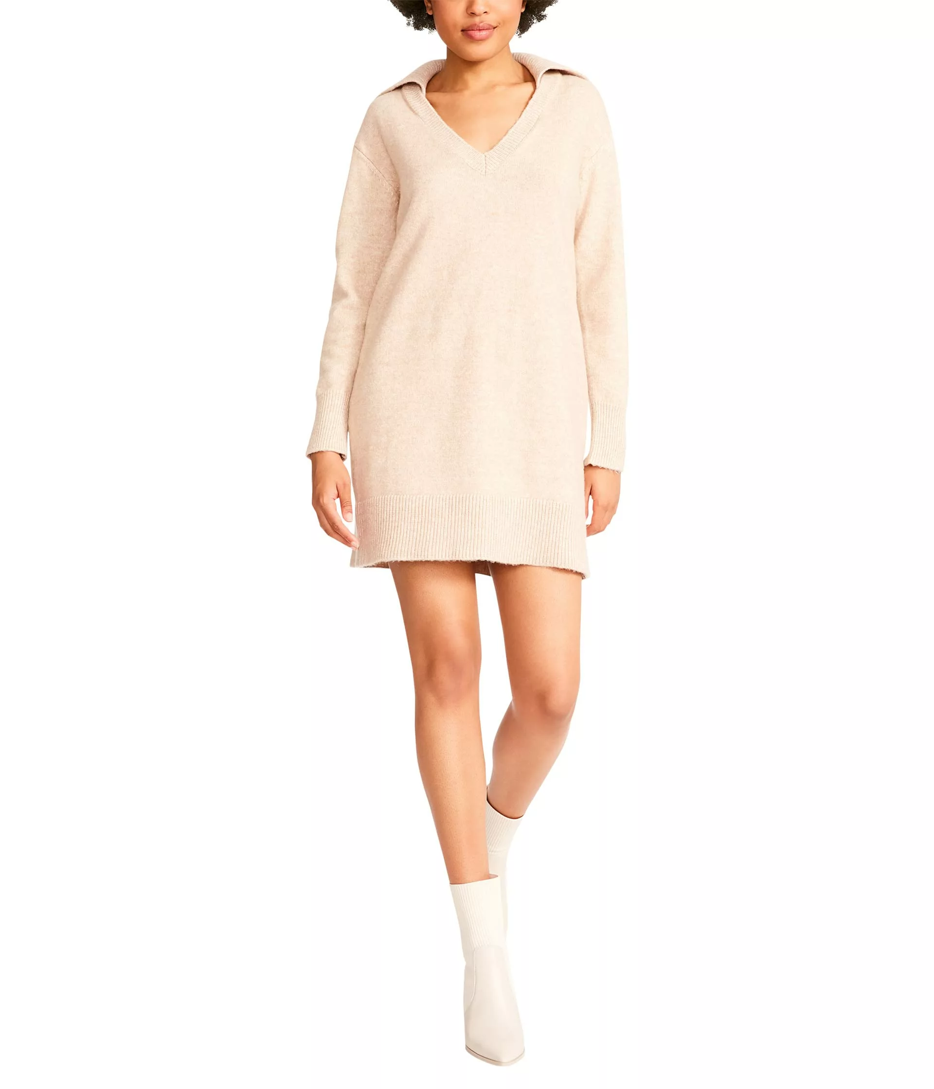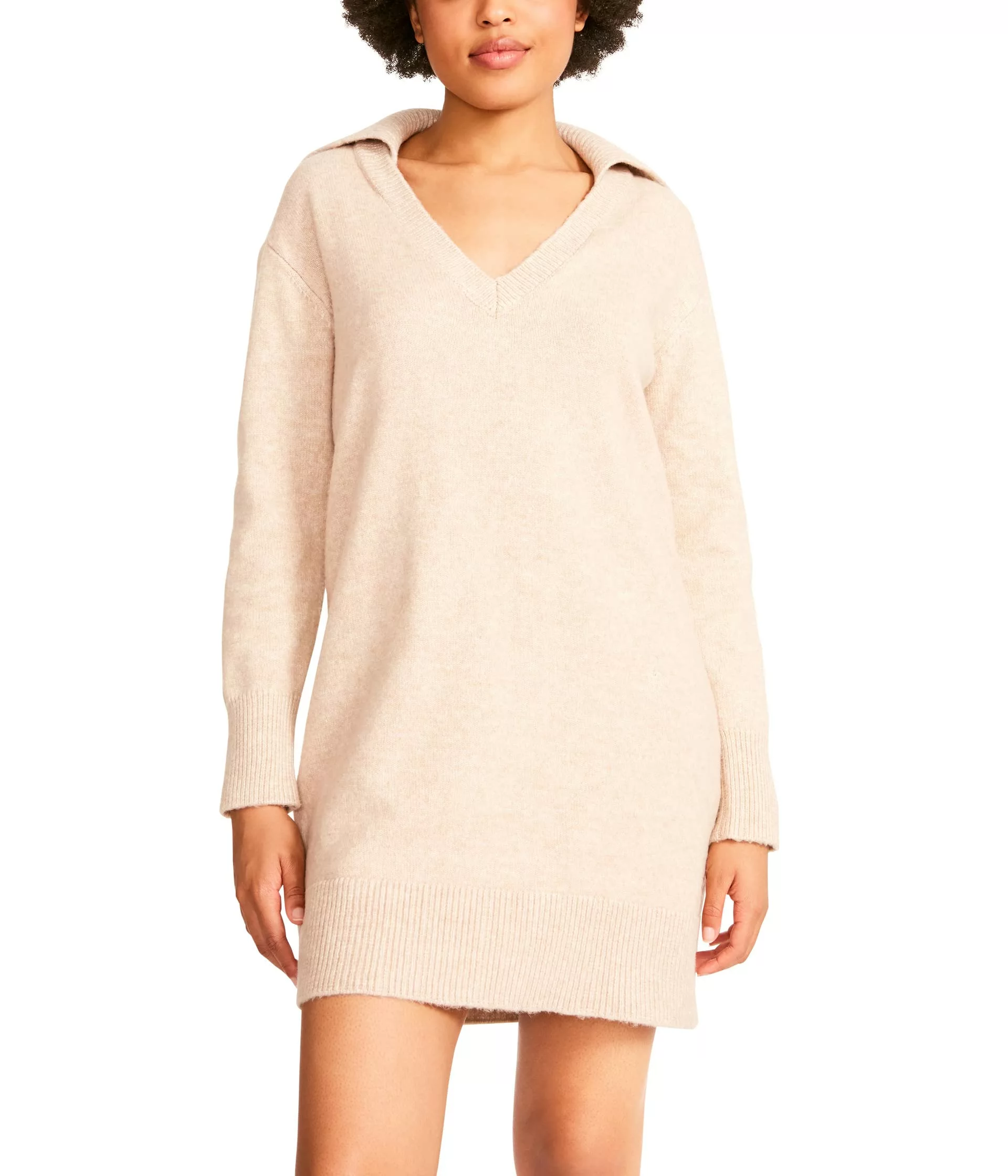 - The BB Dakota® x Steve Madden® Warm Thoughts Dress is made of a soft marled yarn sweater material and it features a chic statement collar and mini-length hemline.