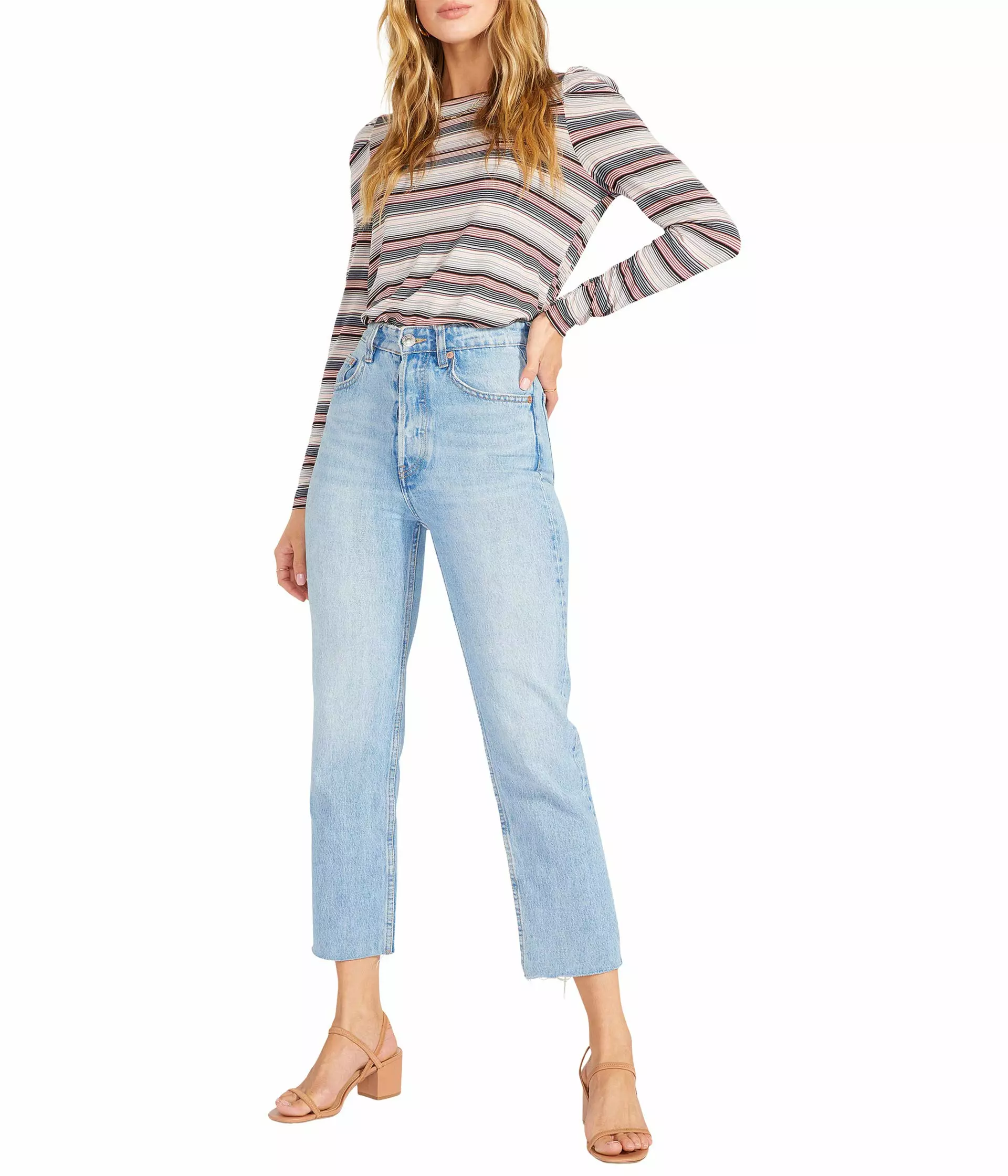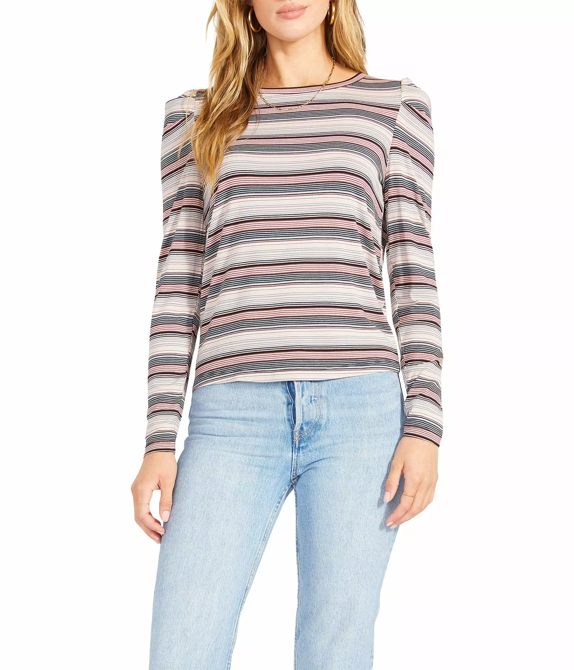 - Great for layering, the BB Dakota® Wind Drifter Top – Stripe Top has long sleeves and a striped design that completes this gorgeous look.