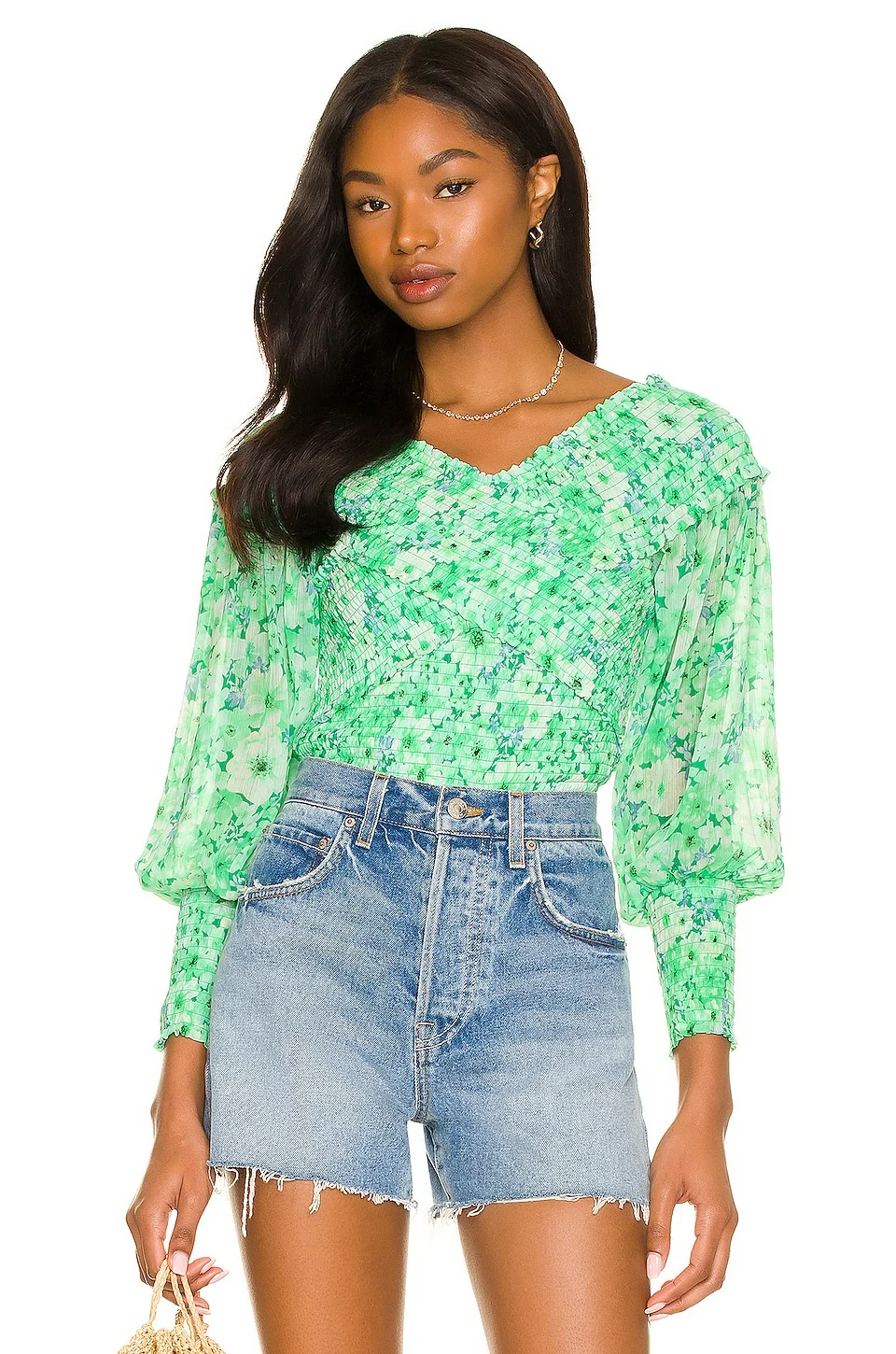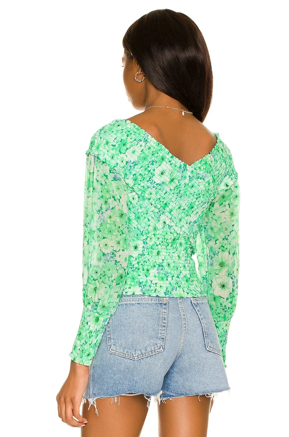 - Blouson sleeves with smocked cuffs